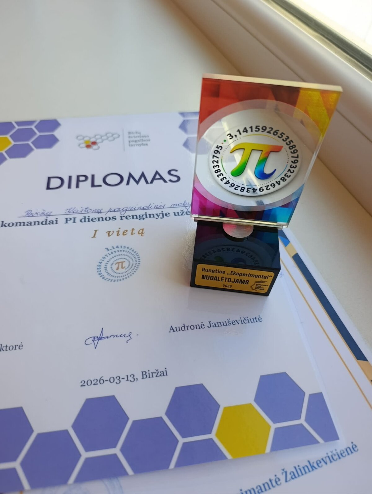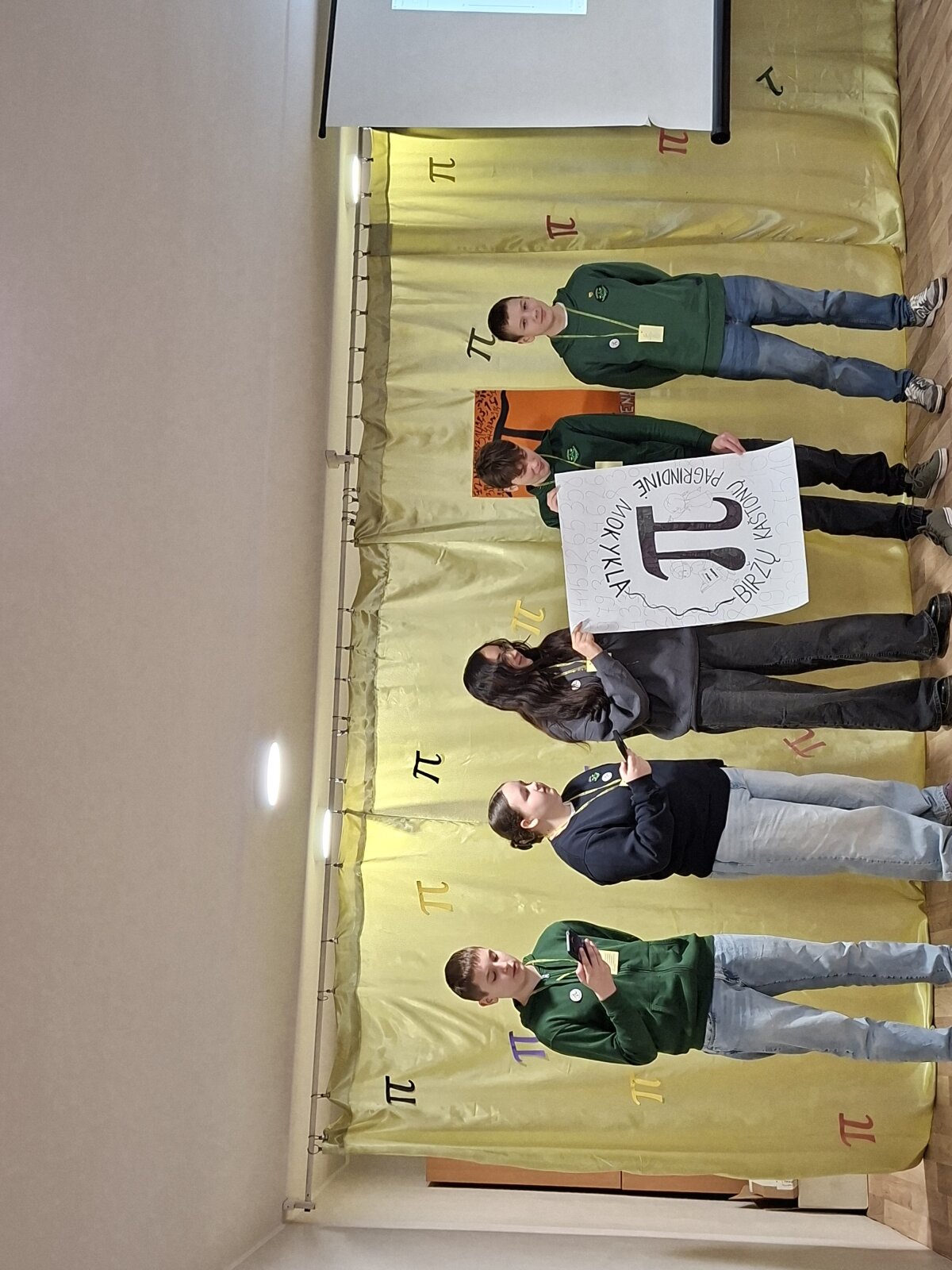 Kovo 13 dieną 7 b klasės komanda - Miglė, Andrėja, Adrijus, Jokūbas ir Martynas - dalyvavo matematikos renginyje ,,PI diena”, skirtame tarptautinei skaičiaus PI dienai, Vabalninko Balio Sruogos gimnazijoje. Renginyje dalyvavo 5 komandos iš Biržų ir Kupiškio rajono savivaldybių ugdymo įstaigų: Atžalyno pagrindinės mokyklos, Kaštonų pagrindinės mokyklos, Vabalninko Balio Sruogos gimnazijos, Alizavos pagrindinės mokyklos, Subačiaus gimnazijos. Renginio tikslas - paminėti skaičiaus PI dieną, pagilinti matematikos žinias, daugiau sužinoti apie skaičiaus PI svarbą žmonių gyvenime, moksle, technologijose. Visos komandos atliko namų darbą – nupiešė ir pristatė plakatą ,,Pi dienos detektyvai”, dalyvavo rungtyse ,,3D iššūkis”, ,,Eksperimentai”, ,,Labirintai”, ,,Protmūšis” ir ,,Inžinierinis iššūkis”. Atliekant užduotis reikėjo ne tik loginio mąstymo, matematinių žinių, gebėjimo jas pritaikyti praktiškai, bet ir kūrybiškumo, sumanumo, komandinio darbo. Džiugu, kad mūsų komanda laimėjo ne tik ,,Eksperimentų” rungtį, bet ir, susumavus visų rungčių rezultatus, užėmė 1-ąją vietą. Iš renginio mokiniai grįžo puikiai nusiteikę, įgiję naujų žinių, patirčių ir įspūdžių.