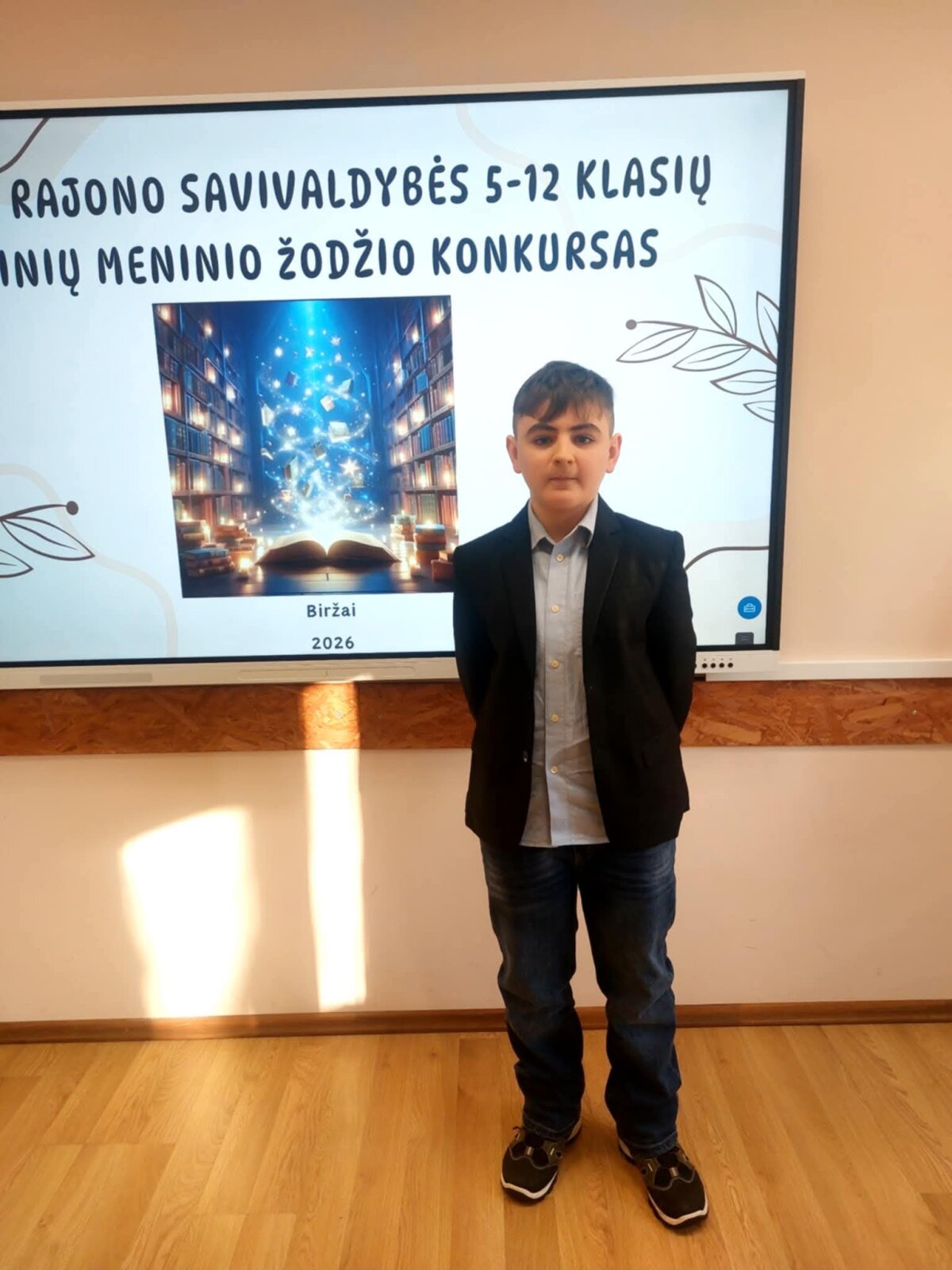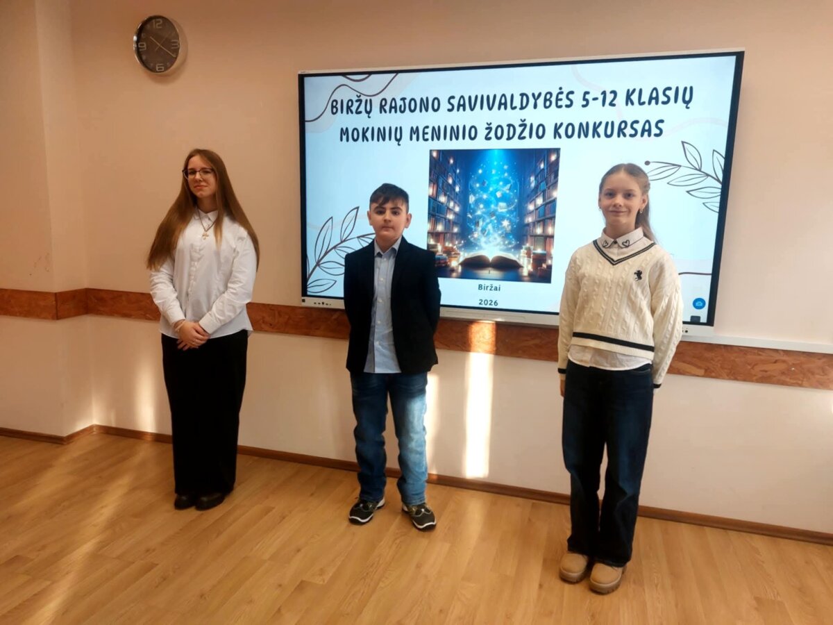 Konkurse dalyvavo Kamėja Paraukaitė(5a klasė), Dominykas Tuomenas (5b klasė), Augustė Žvalionytė (6b klasė). Visi skaitovai puikiai perteikė savo skaitomo teksto nuotaiką, emociją, idėją. Sėkmė šypsojosi Dominykui, laimėjusiam 2-ąją vietą ir Austėjai, laimėjusiai 3- ąją vietą. Sveikiname ir linkime, kad gebėjimas suvokti ir perteikti kūrinio idėją taptų šių mokinių savastimi.