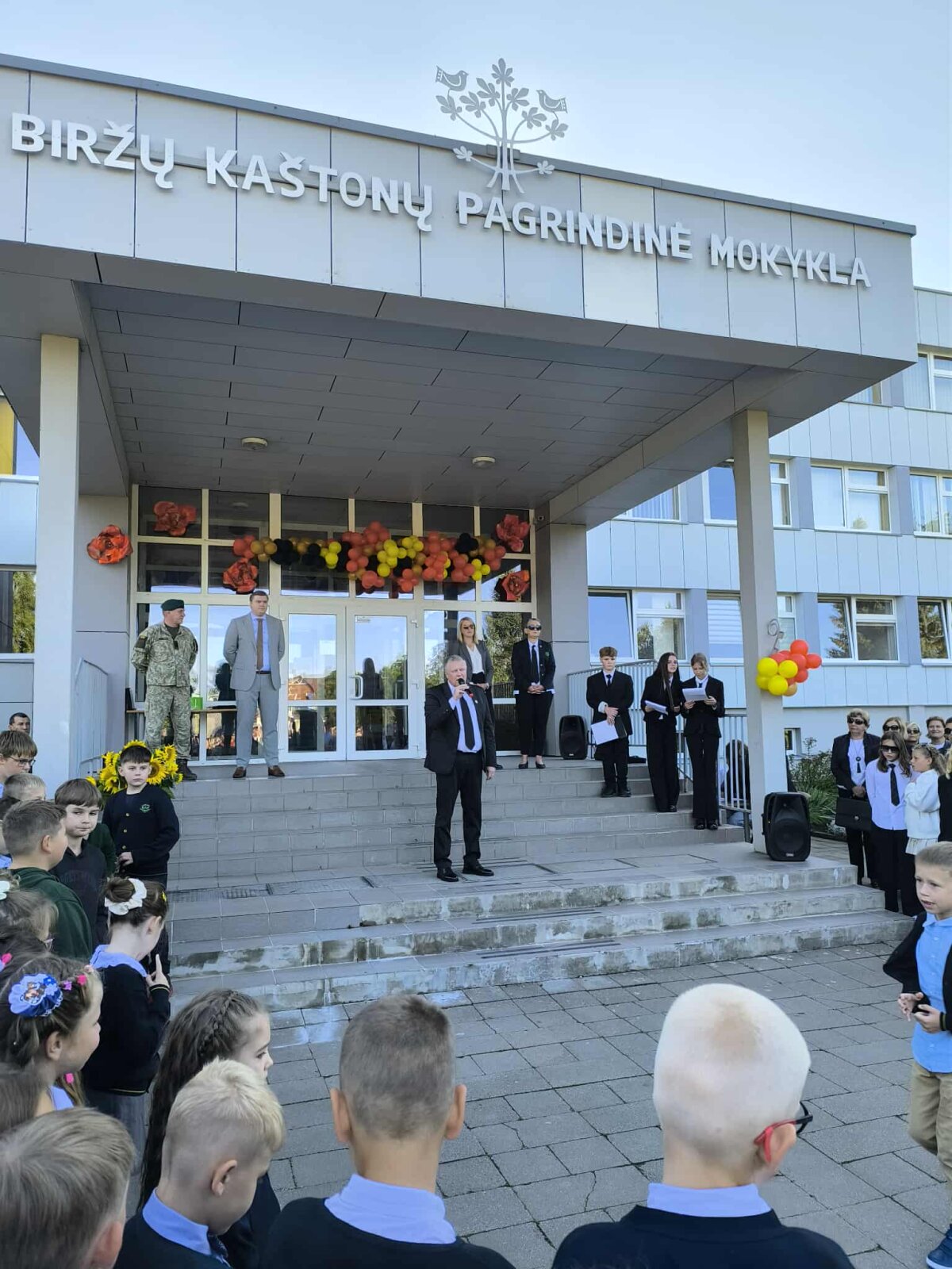 Žodį tarė bei Biržų rajono savivaldybė dovanėles pirmokams įteikė Biržų rajono savivaldybės meras Kęstutis Knizikevičius. Vaikus ir tėvelius pasveikino ir Panevėžio regioninio karo prievolės ir komplektavimo skyriaus Biržų poskyrio viršininkas Vaidas Genys. Direktorius pristatė naujus mokyklos mokytojus bei kitus darbuotojus, pasidžiaugta gausiu pirmokų būriu. Svarbiu šventės akcentu tapo visus suvienijęs šokis. Šokėjai net su žiburiu ieškojo mokytojų pasiruošusių vykdyti svarbią misiją - mokyti kaštoniečius. Smagu, kad daug jų buvo rasta. Į linksmą šokėjų būrį įsiliejo juodai vilkintys ir nusiteikę rimtai misijai mokytojai.