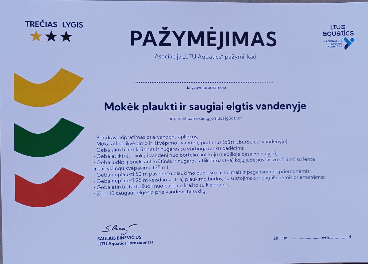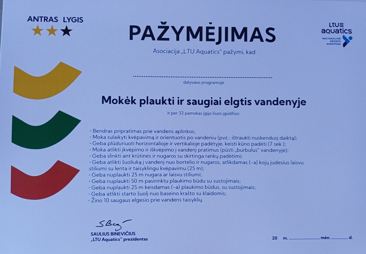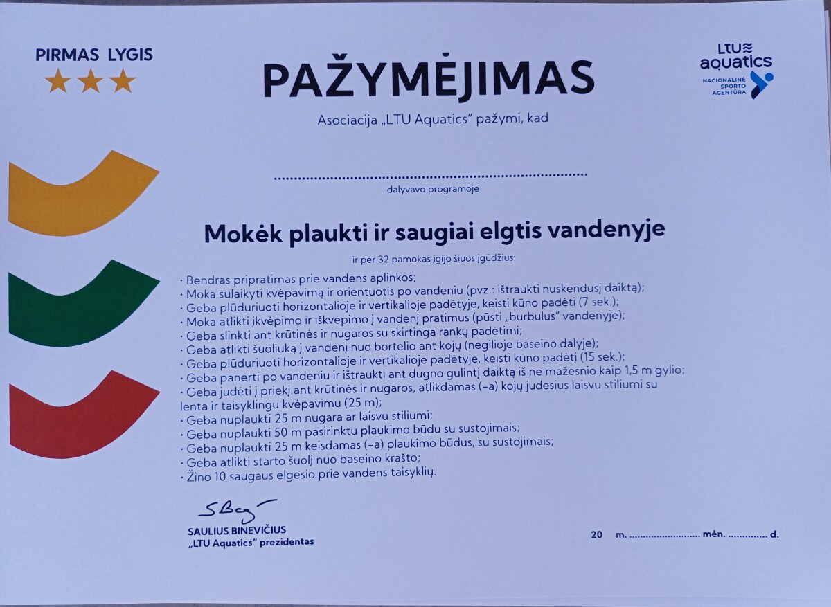 Kaštonų pagrindinės mokyklos visos trys antrokų klasės sėkmingai užbaigė dalyvavimą projekte "Mokėk plaukti ir saugiai elgtis vandenyje". Pamokos vyko Pasvalio baseine. Mokiniai ne tik mokėsi plaukimo pagrindų, bet ir gilino žinias apie saugų elgesį prie vandens bei vandenyje. Užsiėmimų metu vaikai stiprino fizinę ištvermę, lavino koordinaciją, įveikė vandens baimę ir įgijo daugiau pasitikėjimo savimi. Visiems buvo įteikti pažymėjimai. Tikime, kad įgyti įgūdžiai prisidės prie vaikų saugumo ir sveikos gyvensenos ugdymo.