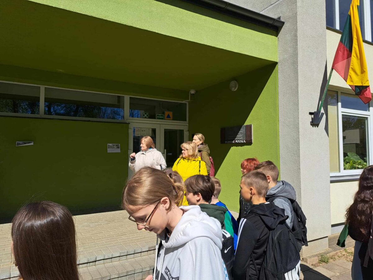 Kaštonų mokyklos 7b klasės mokiniai su lietuvių kalbos ir literatūros mokytoja A... -