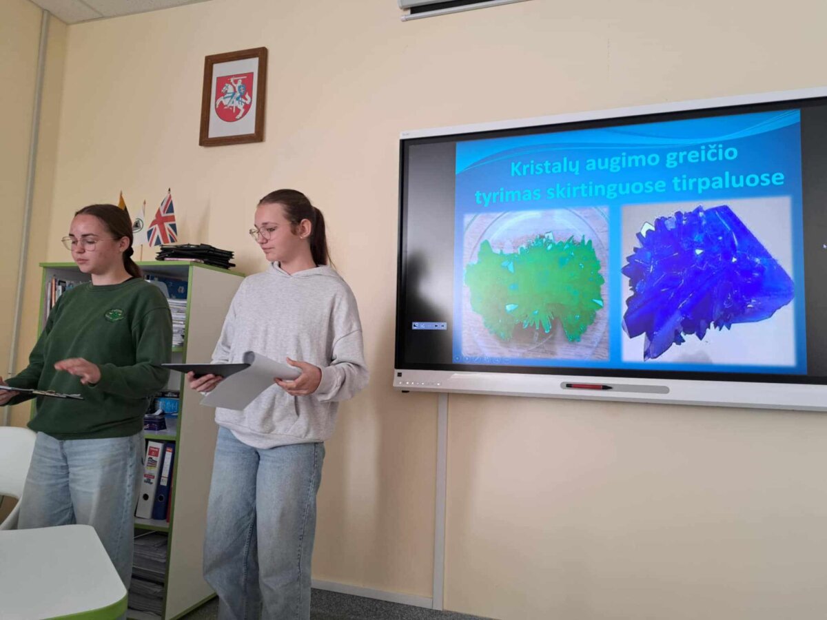 pristatė įspūdingą darbą „Kristalų augimo greičio skirtinguose tirpaluose tyrimas“,