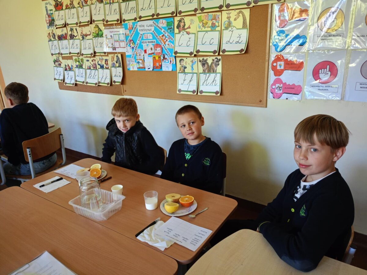 4b klasės mokiniai Faustas Norvilas, Tėja Vaisiūnaitė, Kamėja Paraukaite pristatė darbą ,,Mišiniai". Sužinojome kokių rūšių būna mišiniai, ir kaip lengviau atskirti medžiagas sudarančias mišinius.