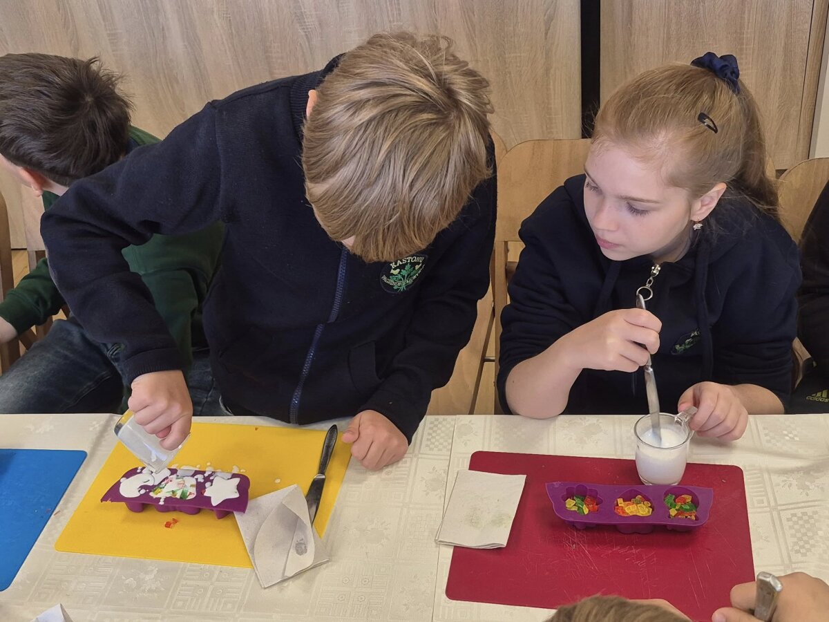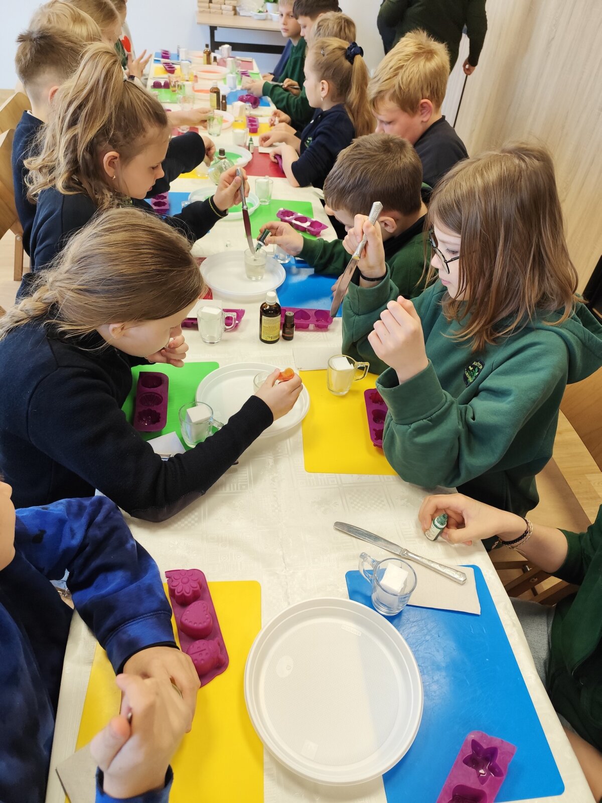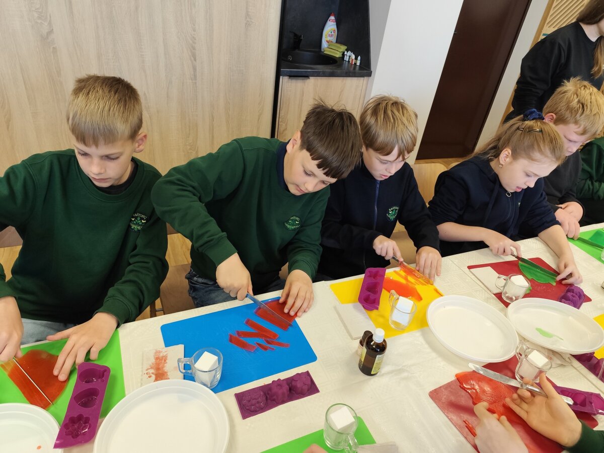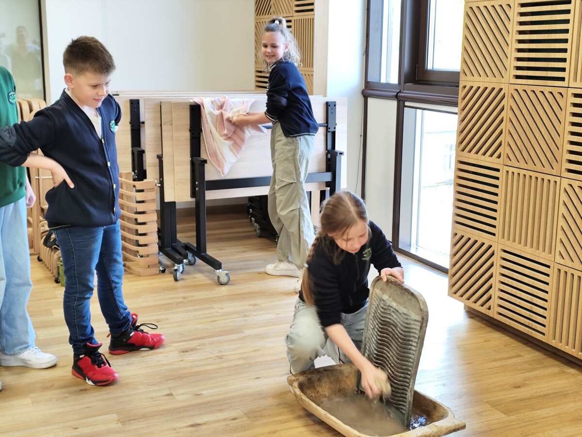 Pasvalio krašto muziejaus edukacijoje "Kaip skalbė mano močiutė" 4a klasės mokiniai sužinojo muilo atsiradimo istoriją, apžiūrėjo pirmuosius rūbų skalbimo ir gręžimo įrenginius, pabandė skalbti rumbe. Kiekvienas pasigamino po tris muiliukus. Daug smagių emocijų sukėlė ekskursija po muziejų. Ypač patiko interaktyvios veiklos.