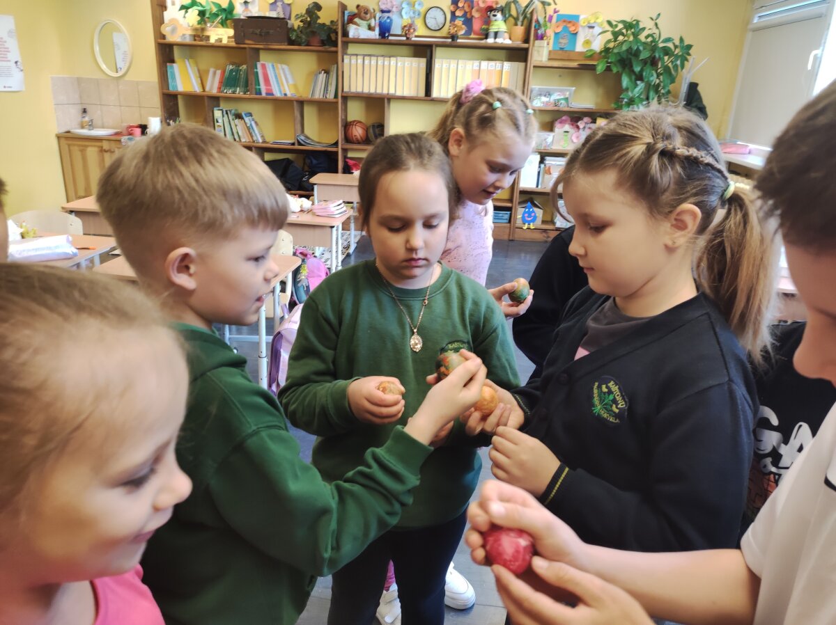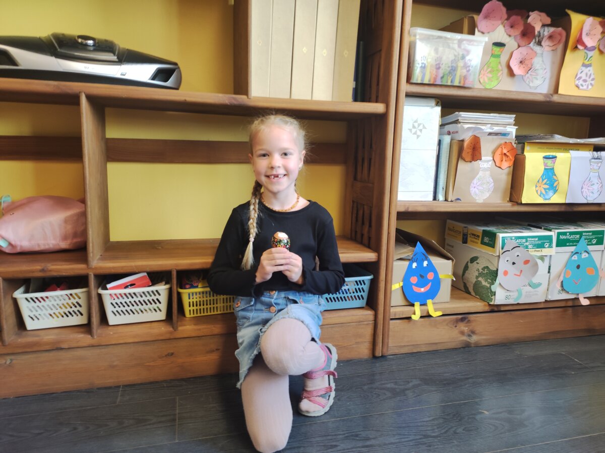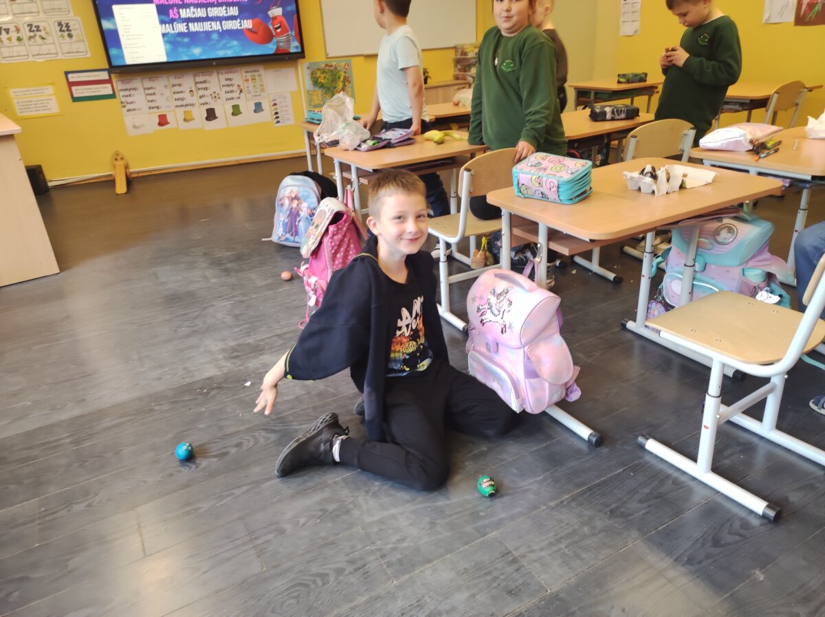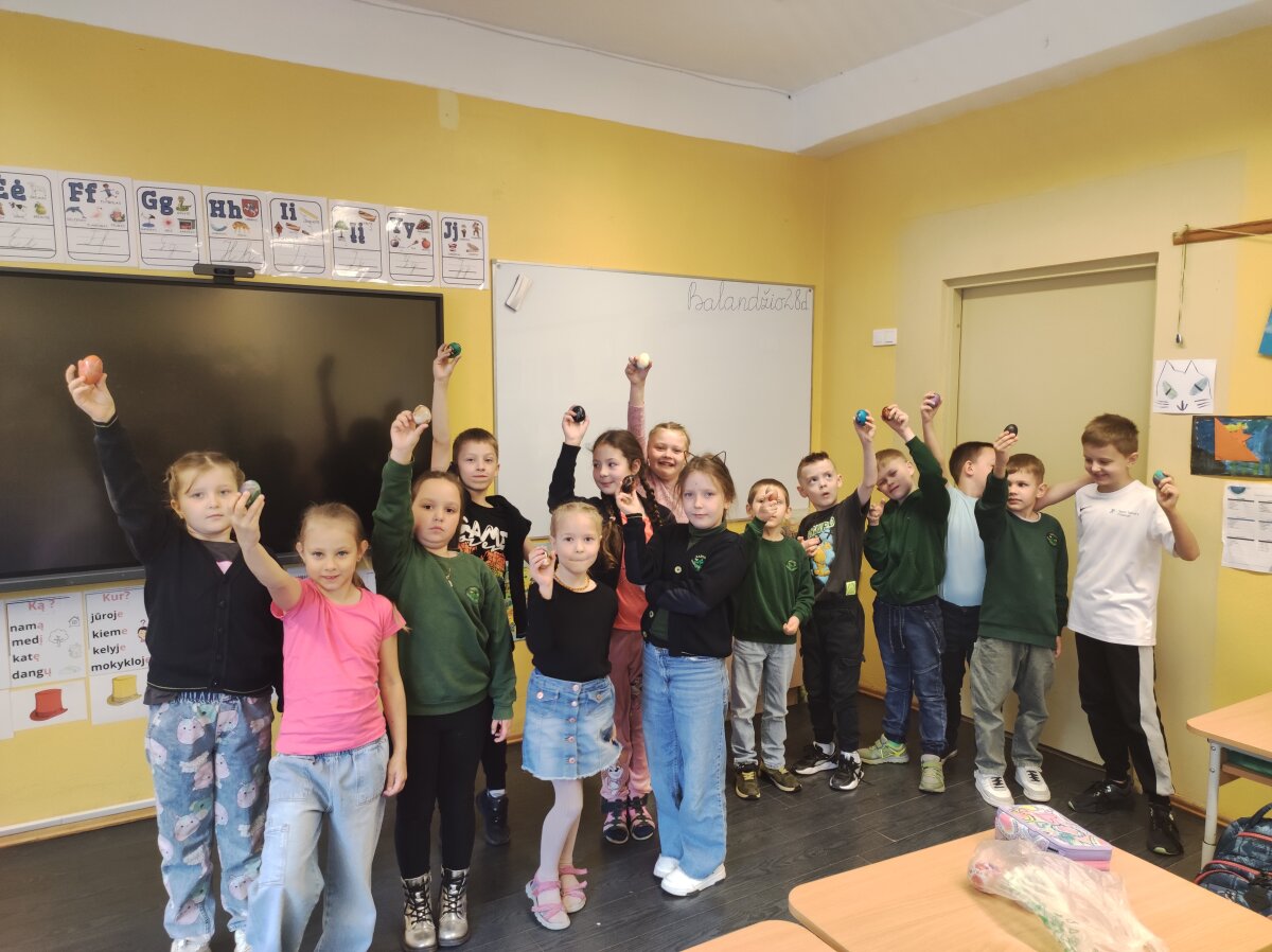Grįžus į mokyklą po atostogų, šventėme vaikų Velykėles. Surengėme kiaušinių ridenimo varžybas, sveikinome nugalėtojus. Dauždami kiaušinius tikrinome kieno kiaušinis stipriausiais. Pirmokėliai ne tik smagiai praleido laiką, bet ir sužinojo daug naujo apie Velykų tradicijas. Tikiuosi, kad pirmoji Velykų šventė ilgam išliks jų atmintyje kaip laimingas prisiminimas.