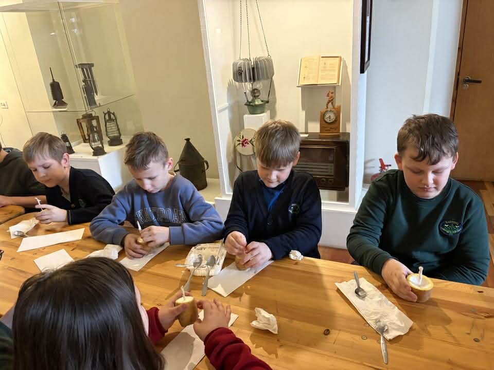 Biržų krašto muziejuje „Sėla“ vykusioje edukacijoje „Susitikim prie žibalinės lempos“ mokiniai susipažino su senoviniais apšvietimo būdais ir patys pasigamino žvakę.