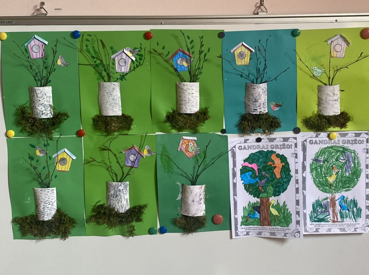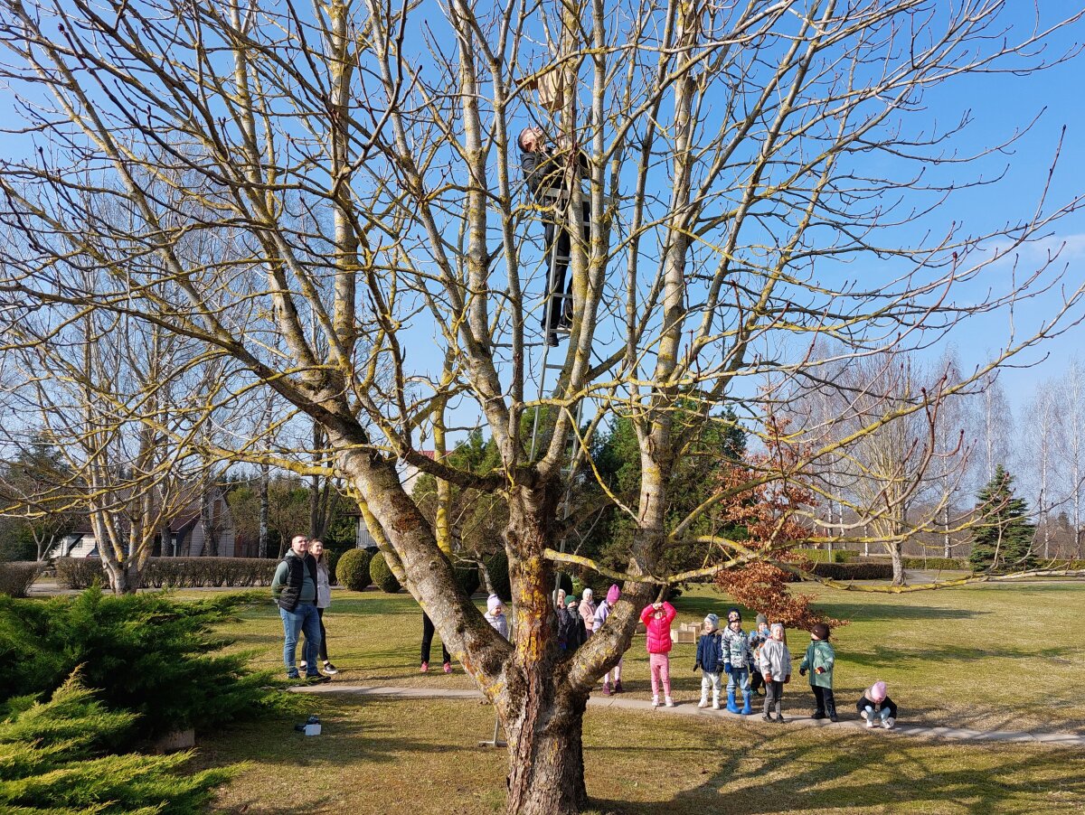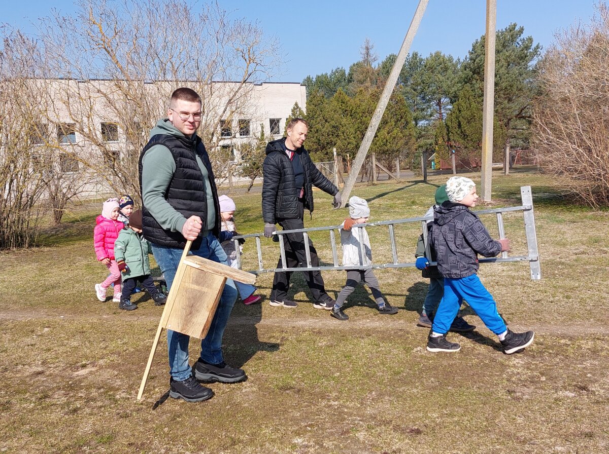 Džiugu, kad mažieji galėjo ne tik stebėti, bet ir patys prisiliesti prie inkilų gamybos proceso. Už tai nuoširdžiai dėkojame vaikučių tėčiams, kurie aktyviai palaikė iniciatyvą „Nameliai mūsų sparnuočiams“. Kovo 30 dieną buvo įkelti būstai skirti varnėnams, zylėms, pelėdoms.